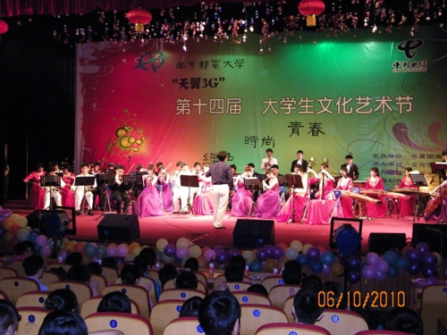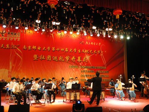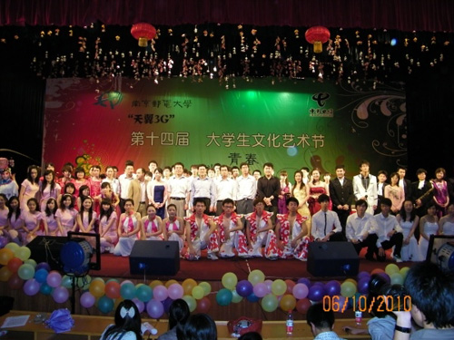 6月10日晚6:30,“天翼3G”第十四届大学生文化艺术节闭幕式在大学生活动中心青春剧场隆重举行。本次活动由校团委、文化艺术中心主办,大学生艺术团承办,中国电信股份有限公司江苏分公司协办。中国电信南京分公司副总经理何起盛、江苏分公司校园营销中心主任宗晨、南京分公司校园营销中心主任曹雯霞出席了本次晚会。