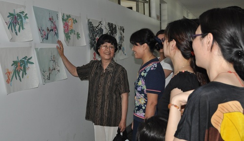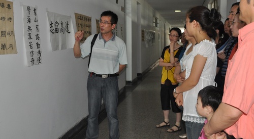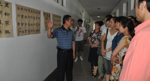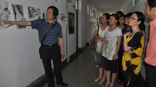 我校教职工书画培训班历时3个月,近日顺利结束。培训班期间,张少武、王平、熊保芳、王立平、金之皓等5位老师,利用周六时间向学员们讲授了“写意花鸟画技法”、“工笔花鸟画技法”、“山水画技法”、“楷书书法”和“隶书书法”。在老师们的精心教学和指导下,经过学员的勤奋学习,本期书画培训班收到了良好的效果。近日,培训班举办了学员习作展评。学员们共上交了七十多幅习作,其中五十三幅作品参加了展评。参展作品有“牡丹富贵”、“紫藤蜜蜂”、“山水瀑布”、“喇叭花雏鸡”、 “桃花小鸟”、楷书作品和隶书作品等,题材多样,用笔认真,色彩丰富,墨香飘溢。虽然大部分学员从未学过国画书法,参加培训的时间又不长,但从所展出的作品可见,学员们在本次培训班上受益匪浅,水平提高很快。校工会将及时总结本次办班经验,认真听取大家的意见和建议,继续开展各种文化活动,丰富教职工的业余生活。