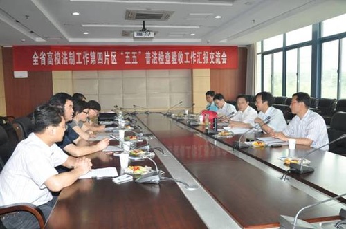 根据省教育厅通知要求,江苏省高校“五五”普法检查验收互查工作要在6月底完成。根据通知精神,按照本片区检查组组长、校党委常委、副校长朱永平的指示,校“五五”普法领导小组办公室广泛征求了本片区兄弟高校的意见,结合实际制定了切实可行的检查验收方案,通过集中汇报交流、现场考察、召开座谈会的形式,认真组织实施了检查验收互查工作。