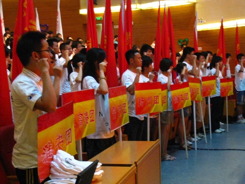 校团委书记张翼介绍了今年大学生暑期社会实践活动的总体安排和部署。学生代表林思远在发言中表达了投身实践、服务社会的决心。省学联驻会主席丛琳带领全体同学进行了庄严的出征宣誓。随后老师和同学们在《飞得更高》音乐声中走上舞台,一起在“推动科学发展,建设美好江苏”的横幅上签名,出征仪式在激动人心的音乐声中结束。至此,我校2010年大学生暑期社会实践的号角已经吹响,全校同学将奔赴各地挥洒汗水,奉献青春。