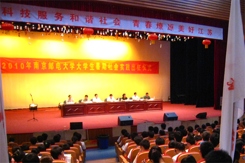 7月9日下午,2010年南京邮电大学大学生暑期社会实践出征仪式在大学生活动中心青春剧场隆重举行。副校长朱永平出席仪式。