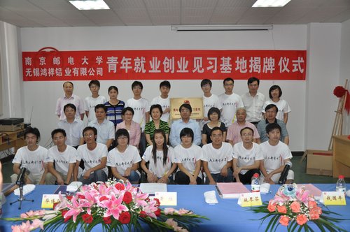 为进一步贯彻落实省委宣传部、省文明办、省教育厅、团省委和省学联等部门联合下发的《关于开展2010年江苏省大中专学生志愿者暑期文化科技卫生“三下乡”社会实践活动的通知》的精神,发挥青年就业创业见习基地在服务青年就业创业中的积极作用,7月14日上午,南京邮电大学与无锡鸿祥铝业有限公司隆重举行青年就业创业见习基地揭牌仪式。