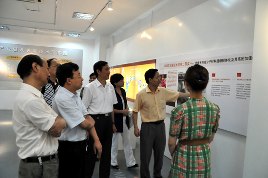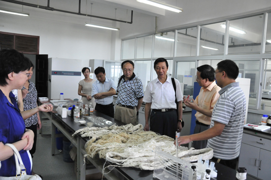 调研组一行参观该校纺织印染清洁生产教育部工程中心实验室