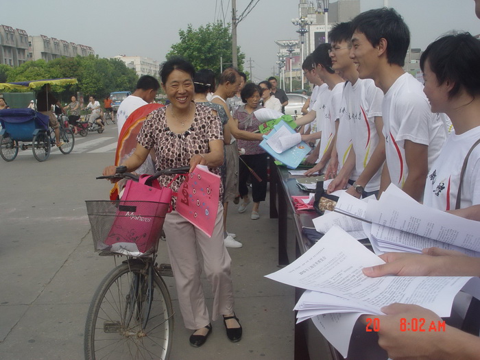 7月20日上午,暑期科技服务团的老师和同学们来到阜宁县铁军广场,与阜宁县团委共同举办了““喜逢世博,共迎青奥”---我带“世博、青奥”回家乡系列宣传活动”。活动以宣“世博、青奥”知识,弘扬“世博、青奥”精神,将“城市,让生活更美好”和“卓越、友谊、尊重”的理念带进阜宁。服务团通过展示“世博、青奥”海报,开展“世博、青奥”知识问答,发放“世博、青奥” 知识宣传单和环保袋等活泼的方式向阜宁市民介绍有关世博会、青奥会、2010年上海世博会和2014年南京青奥会的情况,取得了极大的社会反响广场,共青团阜宁县委书记戴翔、阜宁县党委宣传部办公室主任陈东风等领导亲临现场参加活动,对活动给予了很高的评价,阜宁市民们积极参与“世博、青奥”宣传活动,称赞活动的形式新颖,内容丰富,意义重大,表现出对上海世博会和南京青奥会的关注,和对其圆满举办的美好祝愿。
