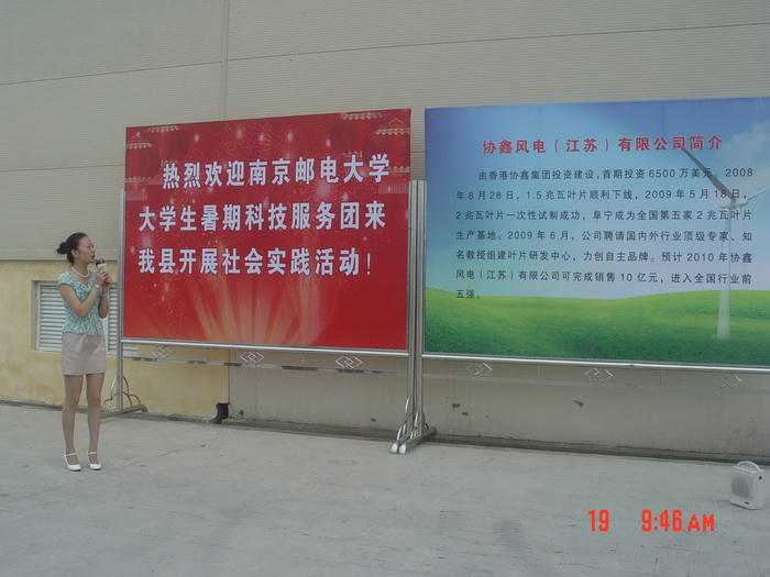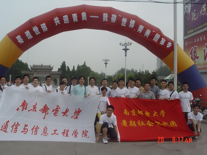 时值上海“世博会”胜利举行,以及建党90周年即将来临之际,为了认真贯彻落实中宣部、 中央文明办、教育部、团中央和全国学联发出的“关于组织开展全国大中专学生志愿者暑期文化、科技、卫生‘三下乡’社会实践活动的通知”的相关精神,按照团省委的统一部属,2010年7月19日至23日,在校团委书记张翼老师、通信与信息工程学院学院分团委书记郭彦铮老师、台湾亚东技术学院教授谢升达等老师的带领下,我校2010年大学生暑期科技服务团一行26人赴革命老区阜宁开展了为期一周的社会实践活动。本次活动以“重温革命精神,践行科学发展,服务红色阜宁”为主题,深入老区基层,结合自身的专业知识特长,开展了丰富多彩的社会实践活动,主要包括“南邮科技服务团阜宁行”系列信息科技讲座、企业信息化技术项目合作、“喜逢世博,共迎青奥”---我带“世博、青奥”回家乡系列宣传活动、“重温革命情怀,构建和谐老区”、“大手拉小手”等系列活动。全方位、多角度、立体式的开展本次暑期实践活动,体现了当代大学生良好的精神风貌,推进了学生的素质教育和社会实践,在社会的书本中,糅合理想与现实,联系知识与需求,增强了当代大学生的历史使命感和社会责任感。