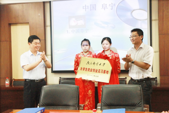 在张翼书记热情洋溢的致辞后,校团委与阜宁团县委签订了《南京邮电大学大学生就业创业见习基地协议书》和《共青团南京邮电大学团委和阜宁团县委友好团委协议书》,并举行了“南京邮电大学大学生就业创业见习基地”揭牌仪式。