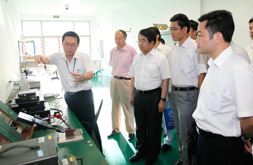 副市长张志华、开发区管委会副主任潘建康陪同黄维副校长一行参观考察了开发区光电产业园。在洽谈会上,潘建康副主任向来宾详细介绍了光电产业园在建情况以及今后的发展规划,并从光电产业园亟需提高自主研发能力、拥有自主知识产权的高新技术的角度出发,希望能与国内外著名高等院校、科研院所密切合作。开发区留学人员创业园副主任秦珊珊简要介绍了在此之前和南邮材料科学与工程学院接触洽谈的基本情况,以及今后校地双方可能合作的着力点。我校材料院党委书记李兴鳌,副院长范曲立等分别介绍了学院目前学科发展、人才培养和科学研究进展,提出了合作的方向。经过热烈友好的深入研商,校地双方就发挥各自优势,在共建公共研发平台和检测中心、建立研究生工作站、博士后工作站,建立大学生实习基地等方面达成了初步意向。