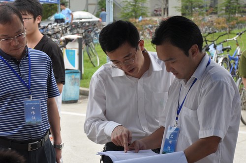 杨校长在迎新现场详细了解新生报到情况