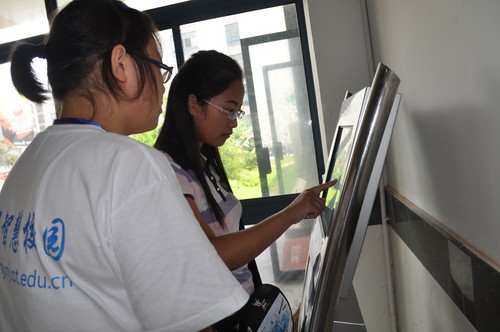 新同学在志愿者帮助下给校园卡充值