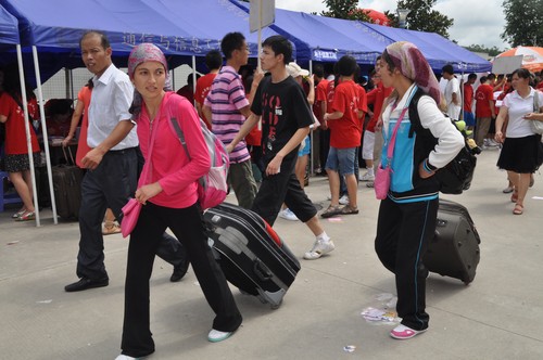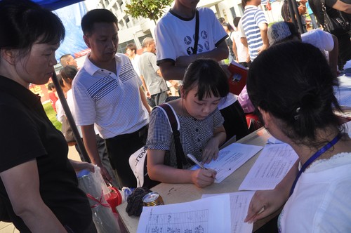 新同学在家长陪同下办理入学手续