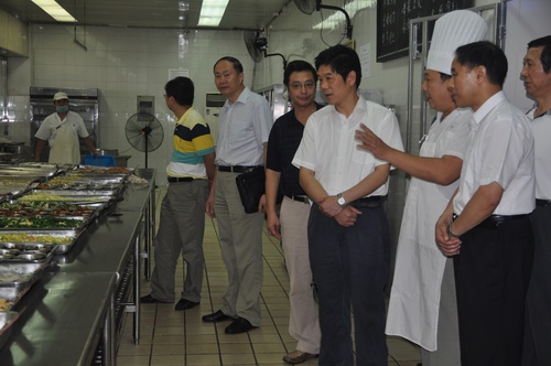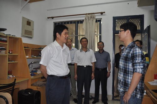 党办、宣传部、保卫处、学生处、后勤服务集团负责人参加汇报会,并陪同检查了学生宿舍和学生食堂。