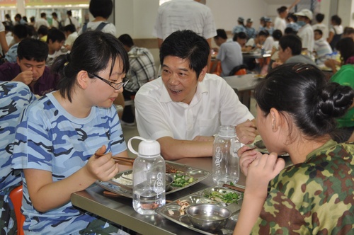 汇报会结束后,朱副厅长一行考察了学生宿舍和学生食堂,听取了相关人员的介绍,和学生就宿舍条件、食堂饭菜质量进行简单交流,并在学生食堂与学生共进午餐。