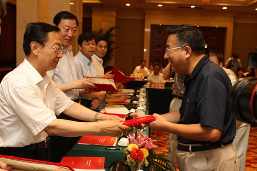 李毅中部长、罗志军省长为我校张顺颐教授发放聘书