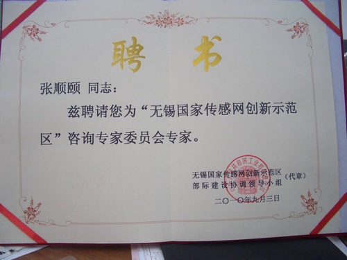 另据悉,8月9日,张顺颐教授被无锡市政府授聘为无锡市物联网发展专家。