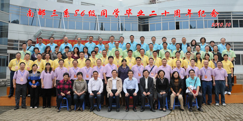 “虎踞龙盘今胜昔,笑语欢歌叙情谊”。2010年10月1日,南邮无线电工程系86级约80多位校友,怀着对母校的拳拳之心和崇敬之情,从四面八方重回故地,相聚在南邮美丽的校园,举行毕业二十周年纪念活动。 在短短的两天内,校友们欢聚一堂,抚今追昔,共叙同窗友情;学生食堂就餐,回味在校生活;看望班主任、任课老师,感念师恩;参观新校区、种植纪念树,充分感受到母校的亲情和蓬勃发展。特别在听取杨震校长介绍学校目前规模和发展的宏图后,大家感到无比自豪,倍受鼓舞,纷纷表示,永远都将以母校为荣,愿为母校增光。
