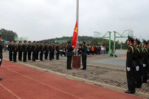 升旗仪式是一种潜移默化的国防教育途径,她的神圣让每一位亲临现场的人感受到了一种强烈的爱国主义精神、民族自豪感和社会责任感。
