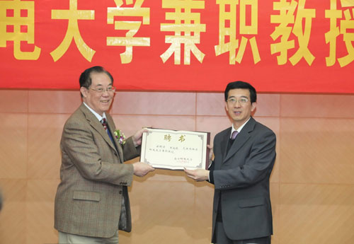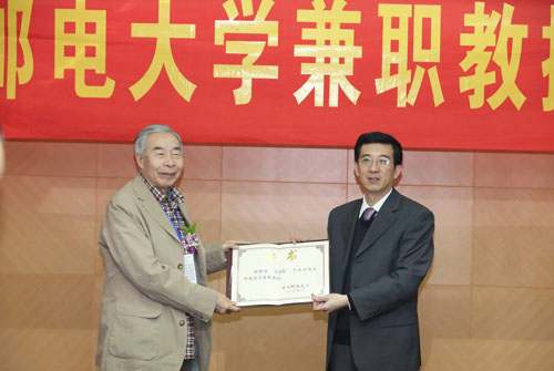 10月30日上午,我校三牌楼校区科学会堂第三会议室蓬荜生辉,气氛热烈,刘应明院士、吴从炘教授、王国俊教授在这里同时受聘为我校理学院兼职教授。杨震校长为三位教授颁发了聘书并佩戴校徽。黄维副校长主持聘任仪式。