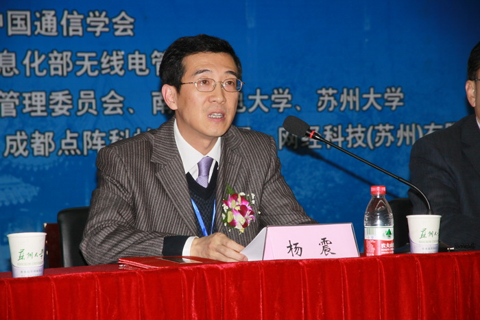 大会组委会副主席、中国通信学会无线电应用与管理委员会副主任委员田效宁主持了开幕式。大会主席、农工民主党中央副主席、中国通信学会副理事长兼学术工作委员会主任、我校校长杨震教授致开幕词,江苏省经济和信息化委员会副主任、江苏省无线电管理局局长张坊,苏州市副市长浦荣皋,大会程序委员会副主席、工业和信息化部无线电管理局局长谢飞波分别为大会致辞,苏州大学副校长熊思东教授为大会致欢迎词。