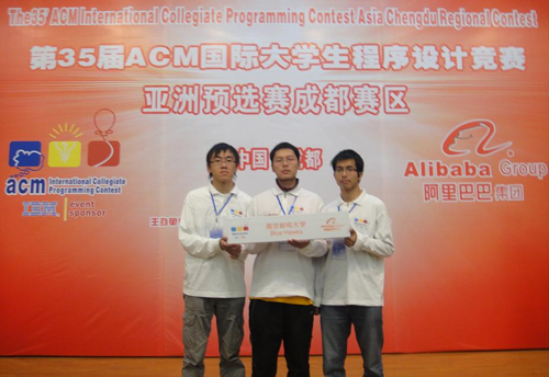 近日,第35届ACM/ICPC亚洲区预赛成都赛区现场赛在四川大学举行,74所高校的126支队伍参加了比赛,我校杨萌(软件学院2009级)、鞠林(计算机学院2009级)、丁燚(海外教育学院2009级)等二年级学生组成的Blue Hawks代表队顽强拼搏,荣获铜奖。