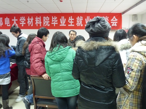 12月24日,南京中电熊猫液晶显示科技有限公司、中国石化集团南京工程有限公司、昆山工研院新型平板显示技术本中心有限公司、无锡爱达索纳米技术有限公司、无锡方圆环球显示技术股份有限公司等多家单位到材料院举行了专场招聘洽谈会。洽谈会在仙林校区教五举行。