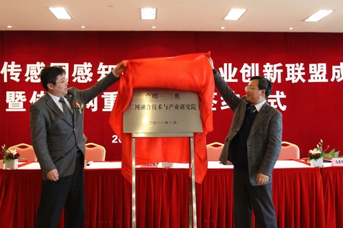 1月6日上午,“南邮-三奥三网融合技术与产业研究院”揭牌暨签约仪式在无锡新区530创业大厦隆重举行。出席本次活动的领导有无锡市委常委、组织部部长陈振一,无锡市委常委、无锡新区党工委书记许刚,南京邮电大学副校长刘陈,福建省三奥科技股份有限公司总裁卓华,无锡新区管委会主任嵇克俭,副主任刘骁、蒲正勇、施琴芬,组织部部长刘明邦等。无锡市、区有关单位和部门负责人,园区传感网企业代表以及银行、创投机构代表也应邀出席仪式。
