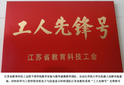 近日,江苏省总工会、江苏省教育科技工会分别发文、召开大会表彰“模范职工小家”和“工人先锋号”。我校通信与信息工程学院分工会被江苏省总工会授予“模范职工小家”光荣称号,传媒与艺术学院分工会被江苏省教育科技工会授予“模范职工小家”光荣称号,理学院数学实验与数学建模教学团队、自动化学院大学生机器人创新实验基地、材料科学与工程学院有机电子与信息显示科研团队被江苏省教育科技工会分别授予江苏省教科系统“工人先锋号”光荣称号,我们向获奖单位和集体表示衷心地祝贺!