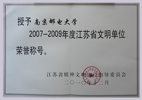 在新春佳节即将到来之际,江苏省精神文明建设指导委员会印发了《关于命名表彰2007~2009年度江苏省群众性精神文明建设先进单位的决定》,授予南京邮电大学“江苏省文明单位”。这是我校多年来连续获得的荣誉称号。