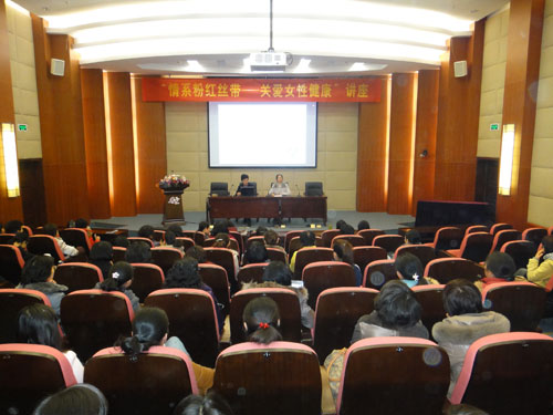 为庆祝 “三八”国际劳动妇女节,增强女教职工的自我保健意识,3月4日下午,校工会、校女职工委员会在仙林校区行政楼一楼报告厅联合举办了“情系粉红丝带-女性健康保健”讲座。东南大学附属中大医院外科副主任医生,外科专科乳腺病专家张亚男副教授担任讲座的主讲。张亚男副教授从1984年开始从事临床工作,擅长乳腺、甲状腺疾病,腹外疝及胃肠道肿瘤的诊治,尤其是在保留乳房的乳癌根治术及乳腺癌Ⅰ期手术再造术等方面,有着丰富的临床经验。本次讲座张亚男副教授以“女性乳腺疾病的预防与诊治”为主题,深入浅出,图文并茂,为参加活动的女教师、女学生上了一堂生动的女性保健知识课,增强了大家对乳腺疾病的早预防、早发现、早治疗的自我保健意识。讲座由校女教职工委员会副主任吴苏旦主持,近100名女教工和女学生参加听讲。