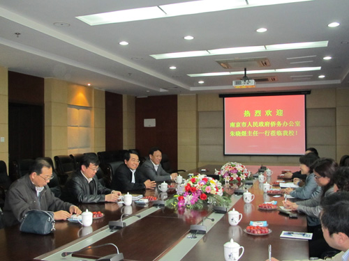 2011年4月13日下午,南京市政府侨务办公室主任朱晓煜一行6 人来我校调研侨务工作相关情况。学校党委常委、副校长、侨联主席黄维热情接待了客人,并与他们举行了亲切座谈。党办、校办主任周南平,组织部、统战部部长刘益华,海外合作与交流处处长、校侨联副主席杨庚、统战部副部长张克萍一起参加了座谈会。