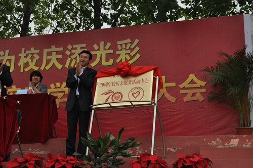 朱永平副校长为“南邮70周年校庆志愿者活动中心”揭牌并讲话。他指出,70华诞将是南邮全力、全面实现“十二五”规划的新起点,是推进学校建设和事业更快、更高、更强发展的重要契机。学校届时将举办多项“喜庆热烈、精彩纷呈”的庆祝活动,以继承优良传统,弘扬南邮精神,凝聚各方力量,促进建设发展,努力把南邮早日建成特色鲜明,在信息科学和技术领域国内一流、国际有影响的教学研究型大学。