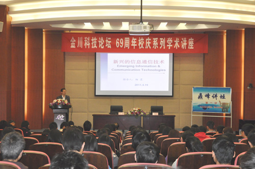 2011年4月19日下午,仙林校区行政楼报告厅济济一堂,教务处、强化培养部主办的“鼎峰讲坛”开讲,杨震校长面向强化培养部及其他师生做了题为“新兴的信息通信技术“的学术报告,这次学术报告也是我校69周年校庆系列学术讲座之一。