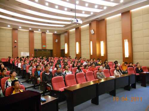 颜晓红副校长主持了报告会,说明了“鼎峰讲坛”的寓意和开办目的,并为参加报告会的强化培养部同学们介绍了杨校长的学术经历。教务处处长、强化培养部主任陈鹤鸣教授和100多位师生参加了报告会。