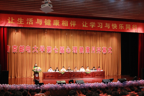 4月27日下午,南京邮电大学第七届心理健康月活动在仙林校区青春剧场启动。仙林大学城心理健康教育研究中心主任周红,江苏省心理学会大学生心理专业委员会常务副秘书长费俊峰、校团委书记张翼、学生处副处长何海洋、相关学院分管领导等出席仪式。出席启动仪式的还有仙林大学城各高校心理健康教育工作者代表及学生代表近600人。