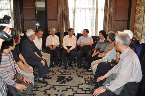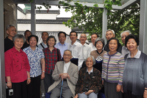 2011年5月14日,南京邮电大学55级长话302班同学相聚南京。校长杨震亲切看望老校友们,大家共聚一堂,气氛温馨感人。