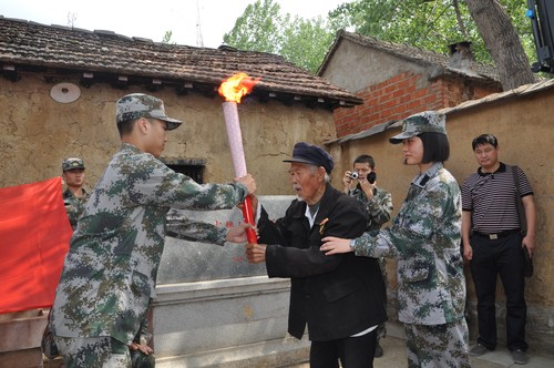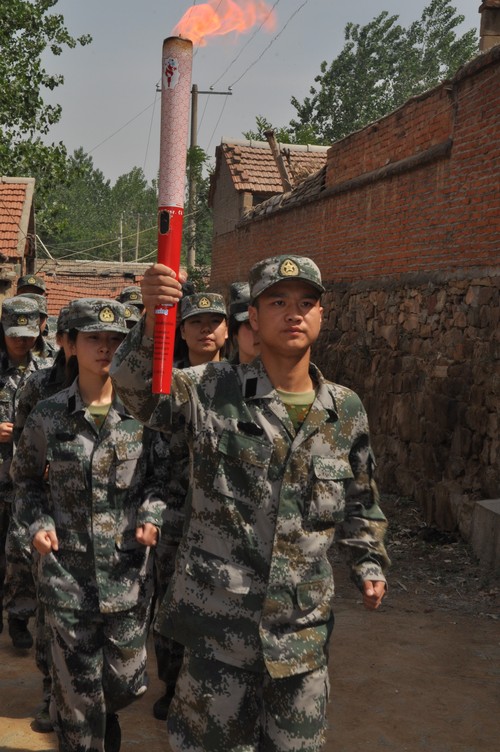 从须发皆白的老八路史公安手中接过燃烧的火炬,国防生张海林的表情很严肃,在他看来,这绝不是一种形式,这是真正的精神的传递,是老一辈革命者为兴国富民奋斗终身的精神。他告诉记者,刚踏上这片土地,他有些难受,因为这片土地依然贫瘠,但也就在那一刻,他攥紧拳头,告诉自己,“将来我有能力了,一定要让这里的乡亲们富裕起来!”这不是戏言,是一名军人对“故乡”的承诺。