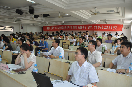 2011年6月23日下午在仙林校区举办了2011年校教学标兵提名奖获得者公开课暨教师(教学)发展中心第二次教学沙龙活动。副校长、校教师(教学)发展中心工作指导委员会主任颜晓红教授出席并观看了公开课,有关职能部门领导、各学院、部教学院长(主任)、实验院长、各教学中心(系)主任及青年教师等近200人观摩了本次公开课。公开课由教务处处长、校教师(教学)发展中心工作指导委员会副主任陈鹤鸣教授主持。