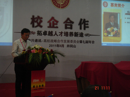 2011年8月23日,中兴通讯-高校战略合作发展委员会第七届年会在井冈山举行,我校党委常委、副校长朱永平代表学校参加。全国多所知名高校代表齐聚一堂,围绕“校企合作——拓卓越人才培养新途”的大会主题,就产学研合作、卓越工程师教育培养计划、人才培养等多项内容进行深入探讨。我校及与会14所高校与中兴通讯签订了卓越工程师教育培养计划合作协议。