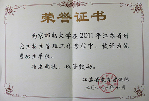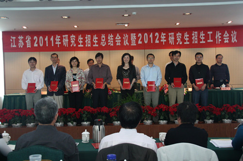 日前,在江苏省2011年研究生招生总结暨2012年研究生招生工作会议上,我校被评为优秀招生单位,受到了表彰奖励。2011年我校招收博士研究生47名、硕士研究生1068名,圆满地完成了国家下达的研究生招生任务。