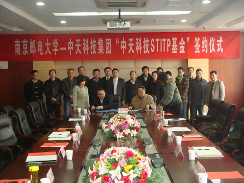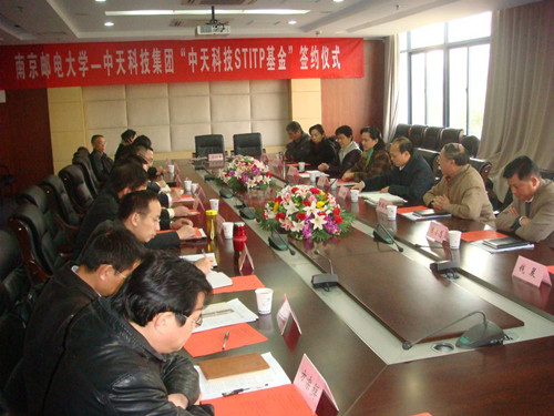11月24日下午,我校与中天科技集团在仙林校区行政楼第一会议室隆重举行“中天科技STITP基金”合作协议签约仪式。出席签约仪式的嘉宾有中天科技集团薛驰副总经理、企划部林峰部长、通信事业部薛功群副总经理;我校党委常委、副校长颜晓红,教务处处长、强化培养部主任陈鹤鸣,强化培养部副主任方萍,教务处副处长、工程训练中心主任陈小惠和各学院分管院长,签约仪式由教务处处长、强化培养部主任陈鹤鸣教授主持。