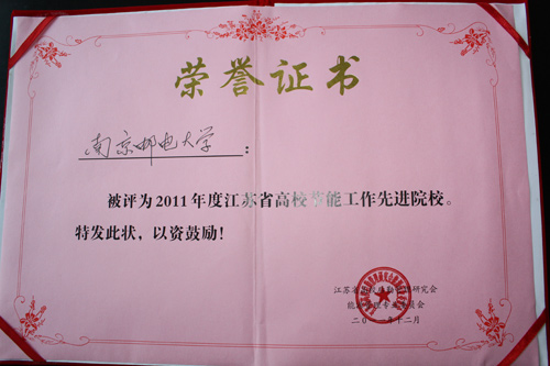 近日,2011年江苏省高校能源管理专业委员会年会在中国矿业大学召开,60多所高校的150余名代表参会。会议对江苏省节能先进工作院校进行了表彰,我校荣获“江苏省高校节能工作先进院校”荣誉称号。