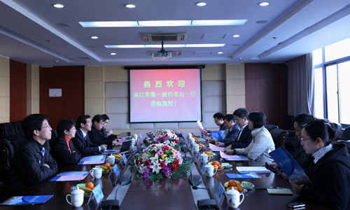 12月16日上午,吴江市市委副书记、代市长梁一波,副市长周志芳一行8人来我校洽谈合作办学事宜,我校校长杨震、副校长叶美兰等领导出席接待并与来宾进行了亲切交流。 校长杨震向梁市长简要介绍了我校的办学历史和发展概况。梁市长介绍了近年来吴江市建设与发展的情况,并表示希望进一步加强与南京邮电大学的合作。 双方就合作办学的一些具体问题进行了深入交流,表示在现有合作基础上要进一步推进。 吴江市政府、苏州信息职业技术学院相关负责人,我校党办、校办相关人员参加了座谈。