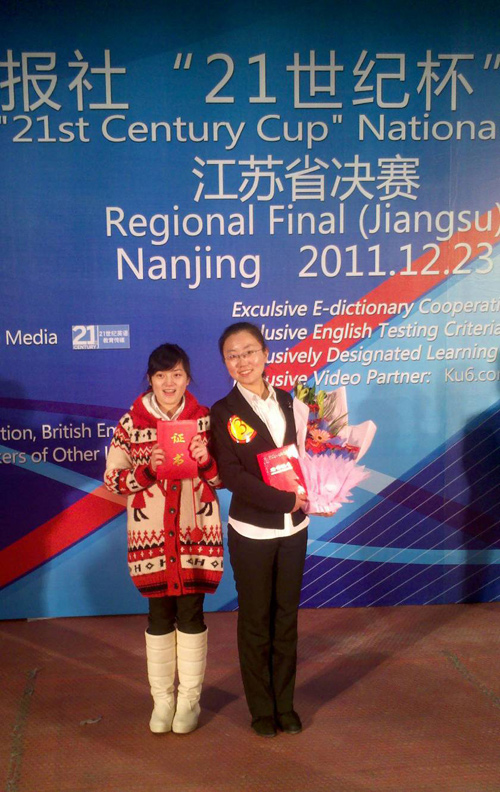 近期,我校学生在全国大学生英语演讲比赛江苏赛区中喜获佳绩。在12月23日举行的“21世纪杯”英语演讲比赛中,来自海外教育学院的2010级本科生姚婧婷获得一等奖,外国语学院2010级本科生罗丹获得三等奖;在10月11日、12日举行的“外研社杯”英语演讲比赛中,来自自动化学院的2009级本科生朱嘉辰、李俊雅与通达学院的2010级本科生吕峰均获得三等奖。