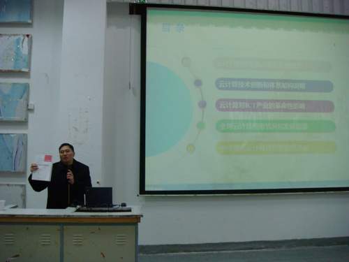 罗圣美总工分别讲解了云计算的基本概念和发展驱动力;云计算技术创新和体系架构;云计算对ICT产业的革命性影响;全球云计算应用情况和发展展望;中兴通讯云计算研究和应用进展等。他还与在场师生分享了他近期参加巴塞罗那国际电信展会的最新产业发展信息及会场图片。