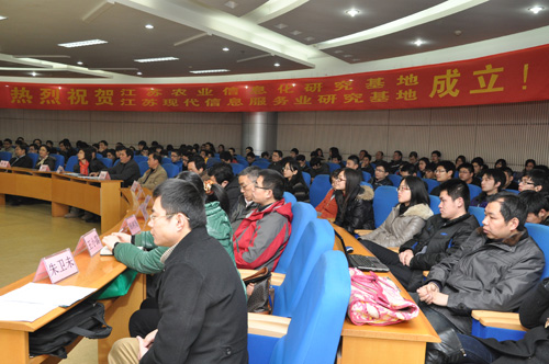 “江苏农业信息化研究基地”校外首席专家许二宁和“江苏现代信息服务业研究基地”校外首席专家胡学同向两个研究基地的揭牌表示祝贺。许二宁表示,作为“江苏农业信息化研究基地”合作单位,江苏省通信管理局将加大与南邮在信息技术、人才等方面的合作,充分发挥通信业在农村、农业中的作用。胡学同认为信息服务业的推进关键在于应用,在于创新,高校是创新的重要源泉。他希望基地的研究者们充分发挥科研优势,努力创新,为江苏省信息服务业的发展提供更多的智力支持。科技处处长施琴芬和经济与管理学院副院长朱卫未分别作为两研究基地专家代表发言。