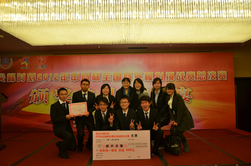 本次竞赛分本科组和MBA组,分别评出特等奖、一等奖、二等奖及单项奖。我院的两支代表队分别是何正海、李希、徐士仝、赵一荣组成的“箭”之队和许菁、李志俊、张强、顾晔组成的“BLACK EYES”队。他们在彭英、林萍、洪小娟三位老师的悉心指导下,从2011年10月开始,经过最初全国400多支队伍激烈的初赛和复赛,最终在杭州举行的决赛中分别取得一个一等奖和一个二等奖的佳绩。充分展现了我校大学生的商业决策能力与精神面貌,为我校赢得了荣誉。