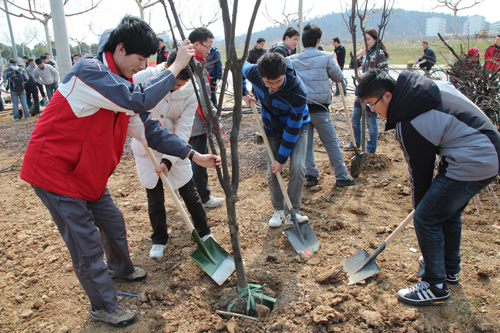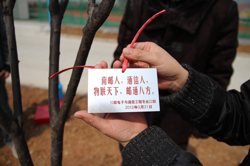 在南京邮电大学七十周年校庆之际,通信与信息工程学院全体师生为了表达对母校的感恩之心,2012年3月,学院党委发出了“捐树植绿,喜迎校庆”的倡议,学院领导、各教工党支部带头捐赠树苗,得到了全院师生的积极响应,此次活动全院师生共捐李树118棵。