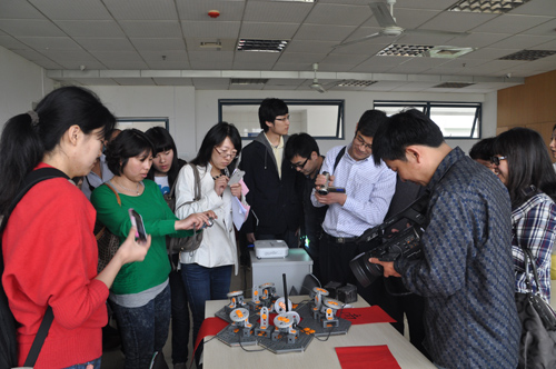 座谈会后,媒体记者还实地考察了我校大学生机器人创新实践基地和网络机器人控制实验室,和实验、实践中的师生们进行了细致深入的交流。