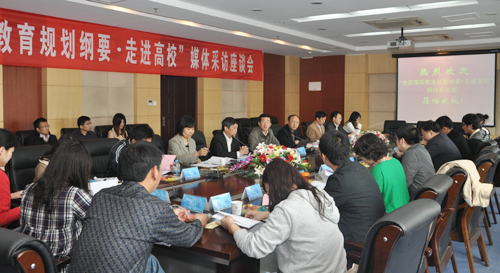 4月11日上午,江苏省教育厅“全面落实教育规划纲要•走进高校”媒体采访团一行16人,在教育厅办公室副主任杨树兵的带领下走进南邮,就我校贯彻落实国家和江苏省中长期教育改革和发展规划纲要、模块化培养实践创新型人才的具体举措和经验成果进行集体采访。杨震校长携教务处、强化培养部、软件学院相关负责人,学生科技活动指导老师以及创新标兵、课外科技活动获奖学生接受了媒体记者的采访。