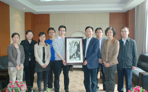 4月11日上午,教育科学与技术学院2012届硕士研究生代表向母校70周年校庆赠送一幅大理石画,副校长朱永平教授代表学校接受了礼物。