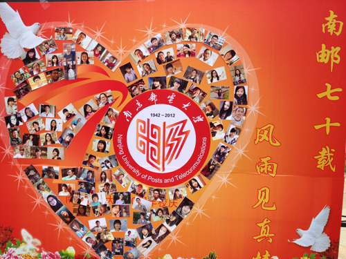 一张精心布置的笑脸墙在南二食堂广场展出,“笑脸墙”上真诚的笑脸来源于通信与信息工程学院的在校学生,110张精心挑选的笑脸在四月的阳光明媚下彰显的格外耀眼,众多学生在南二食堂广场前驻足观看。一张张灿烂的笑脸构成了一幅洋溢着浓浓幸福感的和谐心形拼图,是对母校70岁生日的深深祝福,是誓将“厚德、弘毅、求实、笃行”的校训发扬光大的决心,是南邮学子对母校美好的祝愿和对美好未来的展望。